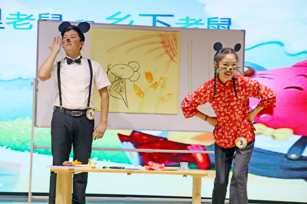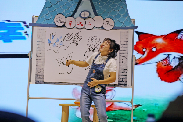 精彩纷呈的故事,跌宕起伏的情节,从一个个专注的眼神中呈现出来。参赛教师全情投入,他们面部表情丰富生动、肢体语言大方得体、声音抑扬顿挫。多样的道具、精美的绘画、悠扬的背景音乐使原本单一的故事多了几分绚烂的色彩。