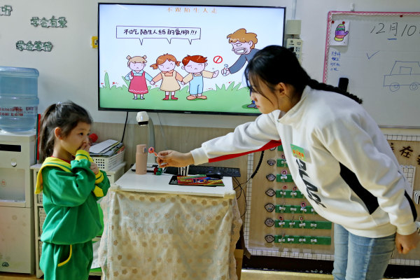 教师通过图片、视频向幼儿讲解、宣传安全常识,让幼儿懂得玩火、玩电、玩水的危害,提升幼儿自我保护意识;通过逃生演练引导幼儿了解幼儿园的安全通道出口,学习正确的逃生方法;通过故事、游戏形式,让幼儿知道在马路上、活动室里、家里等地方应注意的安全事项,学会自我保护的方法。