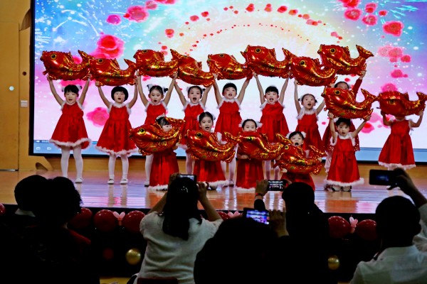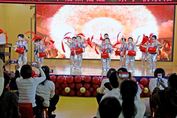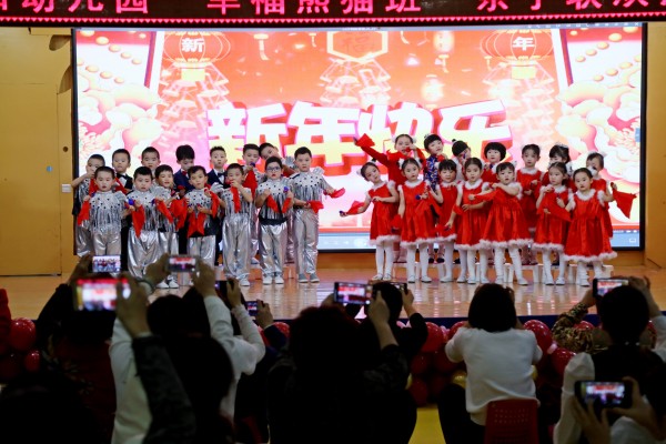 首先,爸爸妈妈们观看了宝贝们在幼儿园的活动视频,进一步了解了宝贝们一年的成长点滴,感受到宝贝们的变化和进步。接下来的精彩表演更让爸爸妈妈们感到自豪:红红火火的腰鼓舞《开门红》、动漫舞蹈串烧《陪我长大》、舞蹈《新年乐陶陶》、悦耳舞蹈串烧《美好的回忆》、朗诵《新年到》等,爸爸妈妈们送上了热烈的掌声。随后我们设计了有趣的亲子游戏,增进家长与幼儿的情感交流。最后,老师给孩子们送上新年礼物和祝福。活动也在幸福的氛围中圆满落幕。