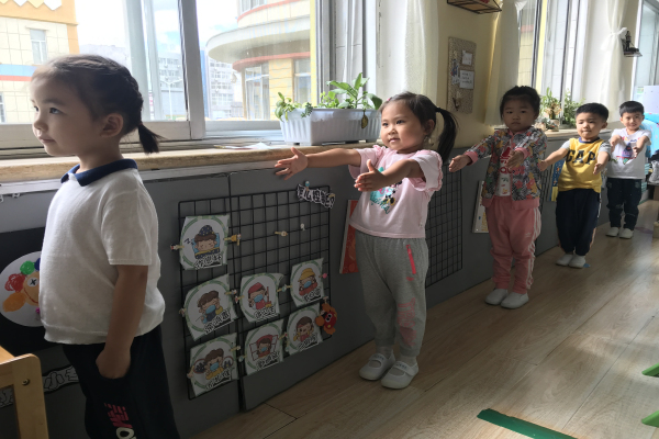 开学初,幼儿园大门入口处实施“一米”排队线,各班也设置了间隔一米如厕、喝水的小脚印标志,小椅子间也粘贴了保持距离的地线……借着这样的契机,孩子们进行了关于“一米线”的探究,在发现、感知距离的同时提高了自我防护意识,为学习和生活做好防疫准备。