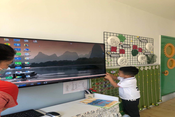 孩子们用卷尺寻找幼儿园中的一米,有的找柜子、有的找黑板,尝试通过自己的测量找到“一米”。孩子们高兴地回家找“一米”,有的找到了自己使用的书桌是一米、有的找到了鱼缸是一米、有的找到了长板凳是一米。去医院做检查时发现排队要保持一米、去书店买书付款时要保持一米。