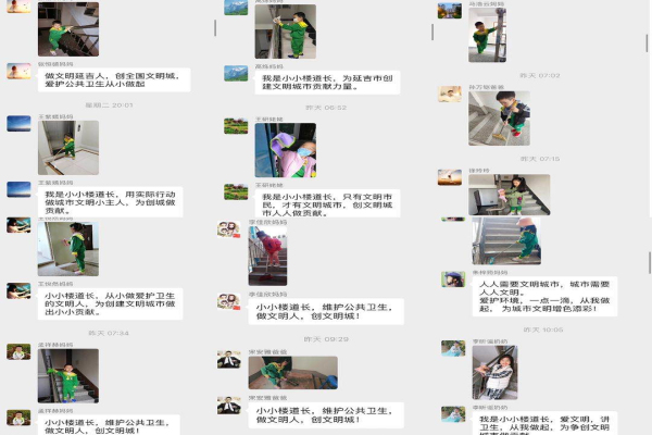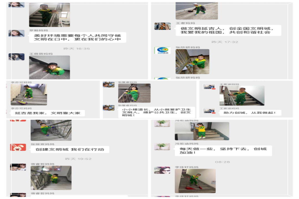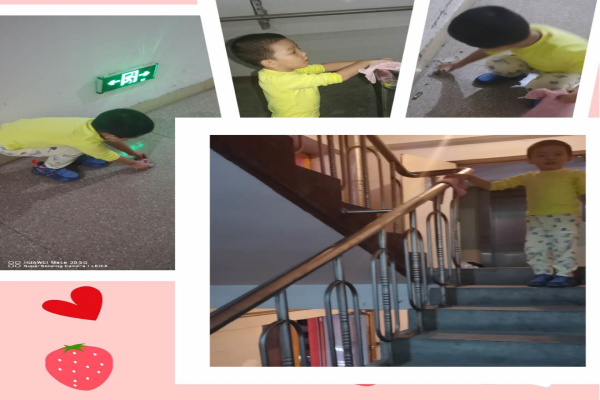 大班的宝贝们争做“小小楼道长”,爸爸妈妈深受触动,与宝贝一起清洁楼道卫生,并主动向左邻右舍发出号召:卫生文明,从我做起。