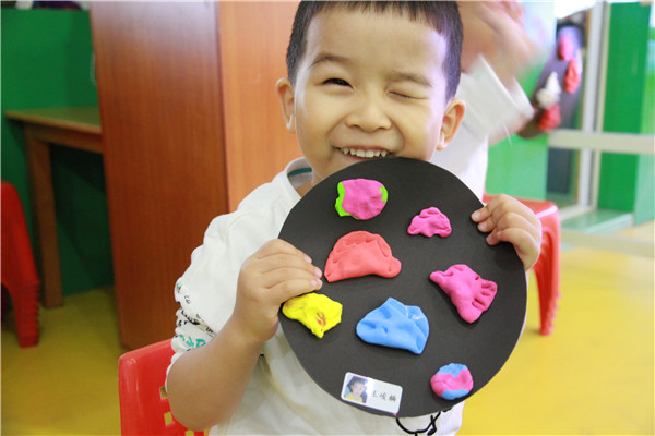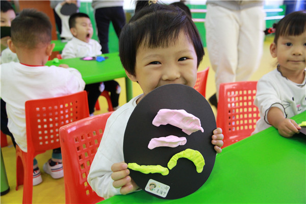 饺子是立冬节气最典型的饮食。孩子们用彩泥代替面团,在教师的指导下,有模有样地包起了“饺子”。捏面团、擀面皮、包馅料,小手一捏、小肚鼓鼓,孩子们像大厨一样忙得不亦乐乎,不一会儿一盘盘“饺子”制作完成,孩子们开心地与自己的作品合影留念,成就感十足。