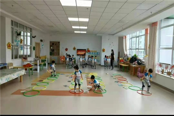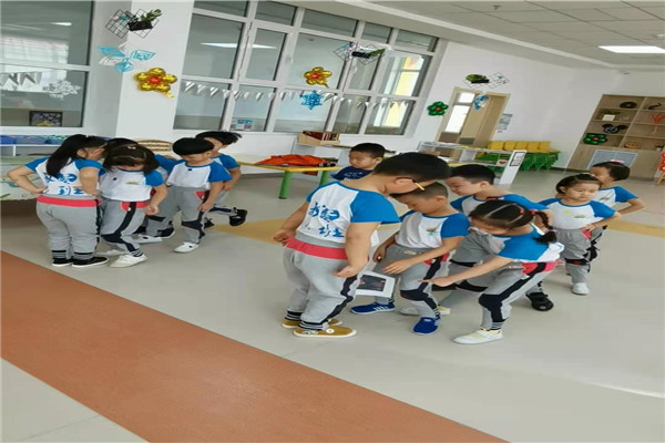 通过游戏活动锻炼了孩子们的行进间并腿跳,孩子们学会了跳跃中的平衡技巧和自我保护意识,发展了前庭觉,增强了核心力量及合作意识。