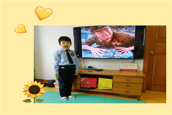 活动前期,教师收集了很多雷锋的图片、徽章、视频、动画等,孩子们通过居家观看相关内容,初步认识、了解雷锋,知道雷锋叔叔是一位关心别人,帮助别人,经常为别人做好事的解放军叔叔。
