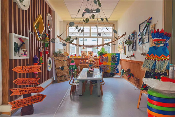 为了让每一个角落都蕴含教育的价值,副园长张军将全体教师分成若干小组,分工好每组负责的走廊区域。每组教师反复研究、积极商讨,并和教导处的三位领导制定了走廊环创方案。
