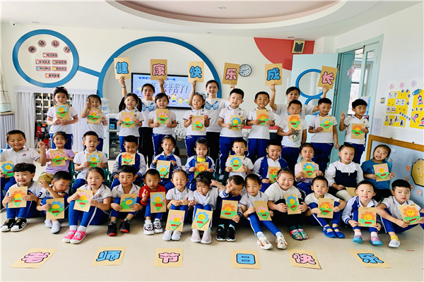 全体小朋友向老师发出“老师,您辛苦了,老师,节日快乐!”孩子们把自己做的手工、自制贺卡和小卡片送给老师,美好祝福和深深祝愿,把师生之间心与心的距离拉得更近了,感动和幸福流淌在每位教师的心间。