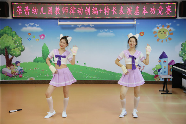 伴随着一首首欢快动感音乐,教师们以饱满的热情和自信的笑容开展律动,时而可爱俏皮,时而帅气炫酷,充分展示了蓓蕾教师的青春和风采。