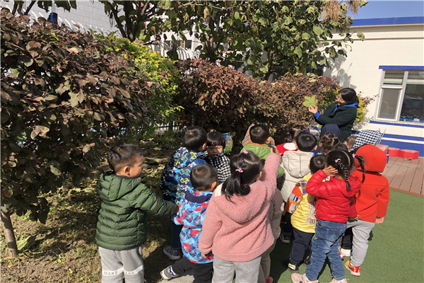 孩子们一边捡拾落叶,一边用稚嫩的声音述说着自己的发现,一会功夫,各种不同形状、不同颜色的落叶,装满了小筐,孩子们像一群小蜜蜂采到蜂蜜一样,满意开心地笑着。
