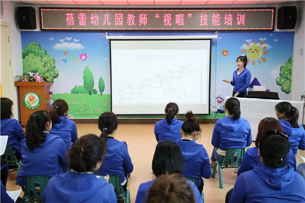 视唱练耳是训练听觉的基本功,也可以帮助教师提高音准,视唱,记谱等方面的能力。为了拓展教师音乐视野,全面提高教师的专业技能,加快教师成长的步伐。3月18日,蓓蕾幼儿园开展了教师“视唱”技能培训活动。