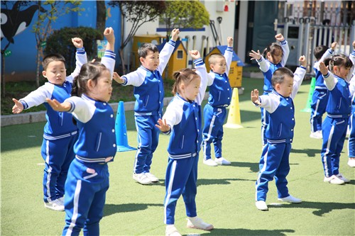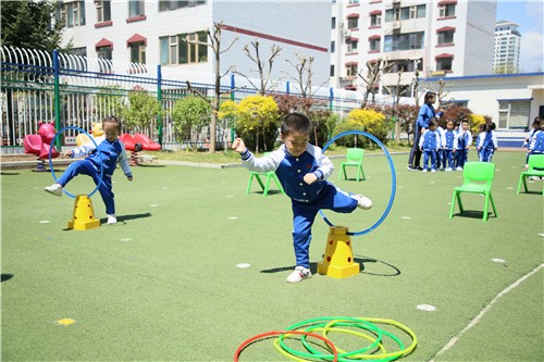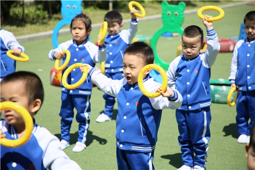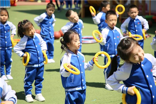 展示中,老师们结合本班孩子的年龄特点和发展水平,从队列练习、游戏活动和放松整理三大部分入手,精心设计活动方案。孩子们服装整齐、精神饱满、朝气蓬勃。各班还精心准备了活动器械,分别展示了各具特色的游戏活动,如“好玩的呼啦圈”、“趣味平衡车”、“快乐传球”等等,充分体现了一物多用、富有趣味性的特点。