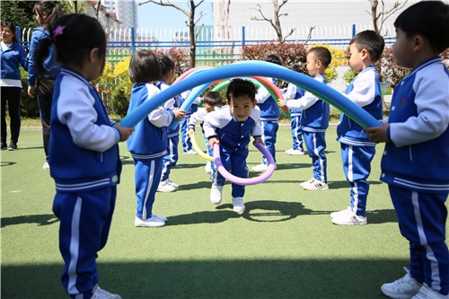为了深入贯彻《指南》精神,因地制宜开展丰富多彩、形式多样的户外体育活动,吸引幼儿主动参与体育活动兴趣,提高运动技能增强幼儿体质。5月11日,蓓蕾幼儿园开展了“一物、一技、一游戏”趣味体育展示活动。