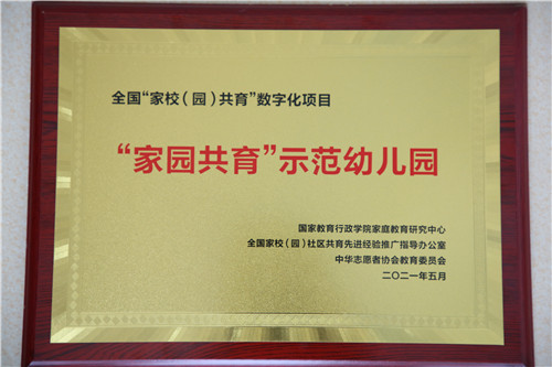 2018年8月,蓓蕾幼儿园被遴选为全国“家园共育”数字化项目试点园,在项目专家历盈老师的引领下,利用网络平台,链接“家园共育”工作,实现了幼儿、家长、教师间丰富、快速、立体的交流新模式,并在2019年获得了首批国家级示范园的称号。今年顺利通过复检,幼儿园再一次获得国家级示范幼儿园称号。