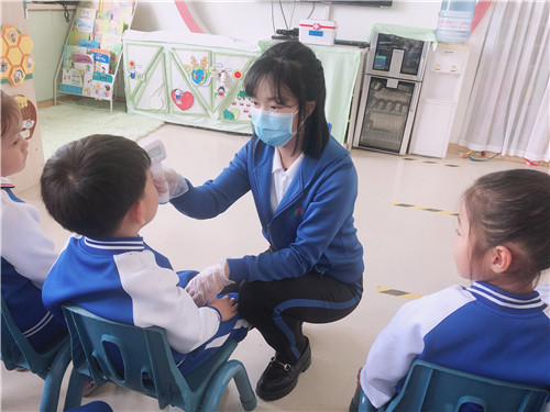 为进一步落实延吉市教育局疫情防控工作精神,为坚决打好新型冠状病毒感染的肺炎疫情防控阻击战,提高幼儿园教师应急处置和防控能力,10月9日,蓓蕾幼儿园开展了“疫情防控不松懈,应急演练筑防线”防疫应急演练活动。