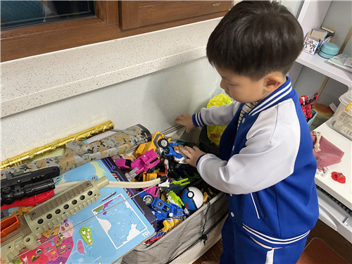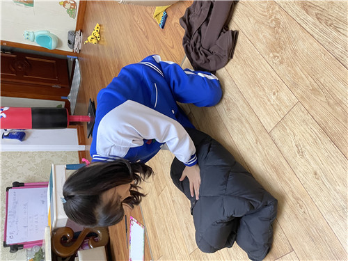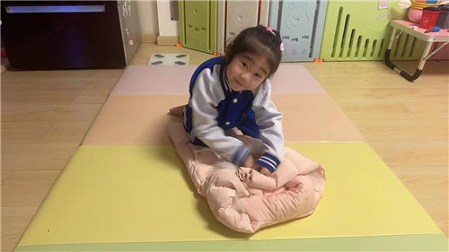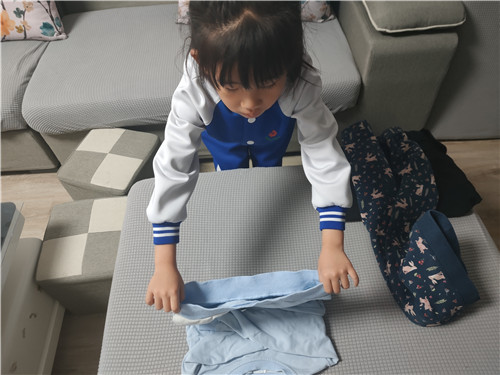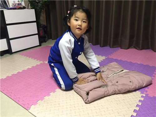为了让家长看到孩子们在幼儿园里养成的生活劳动好习惯,回到家中,孩子们向家长展示了自我服务的本领。“左边门关起来,右边门关起来,小腰弯一弯,衣服整好啦!”孩子们一边念着在幼儿园里学的儿歌,一边熟练地将自己的衣服叠得整整齐齐。之后又完成了收玩具、整理书本等家务劳动,孩子们的小手不仅会服务自己,同时也能帮助家里做家务。通过幼儿园和家庭的紧密配合,放手让孩子们去锻炼,帮助孩子养成自己的事情自己做的好习惯。