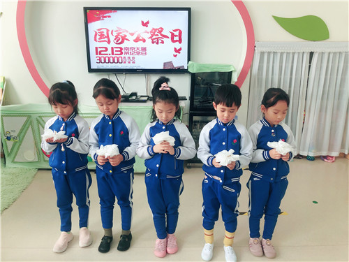 活动中,各班教师根据孩子的年龄特点,甄选了丰富的文字资料、图片资料和视频资料,以谈话、观看视频的形式引导幼儿回顾历史。在谈话中,孩子们知道了国家公祭日的历史和由来,了解了**这一历史事件中日军惨无人道的蛮横行为造成了30万同胞悲惨离世的*。告诉孩子们只有努力学习、振兴中华才能不受外敌侵略。