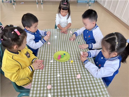 活动中,首先通过播放视频、观看图片等形式让幼儿了解冬至的来历、意义及习俗,知道冬至这天是全年中白天最短、黑夜最长的一天,意味着最寒冷的天气即将到来。同时了解了冬至习俗,各地大不相同,北方会在冬至这天吃饺子,而南方则是吃汤圆。接下来教师带领幼儿体验了“大小汤圆”的游戏,并学习用轻黏土包饺子的方法,体验南北方之间的文化差异。孩子们包的饺子虽然有大有小,造型各异,但在他们的眼中,自己制作的饺子是最特别的!