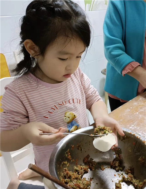 为了更好地开展家园共育,冬至活动延伸至孩子们家中,和家人们一起包饺子,体验动手操作的乐趣。当一盘盘热腾腾的饺子端上来时,孩子们品尝着自己亲手制作的香甜可口的饺子,甜蜜的气氛洋溢在每个宝贝的心中。