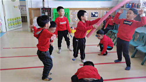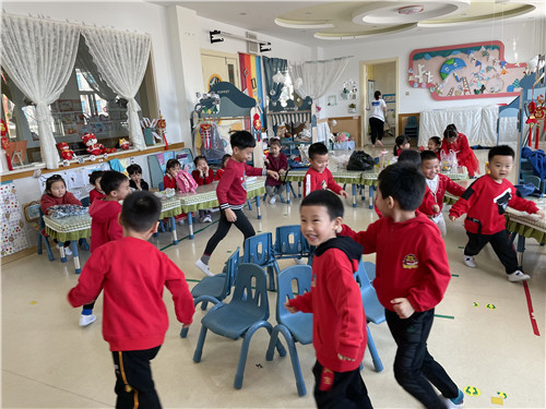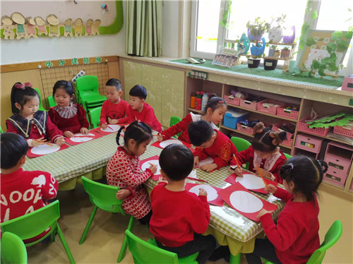 老师手持新年装饰物与幼儿以新年为主题开展谈话活动。在谈话中,幼儿了解了中国传统节日“新年”以及“新年”的各种习俗。剪窗花是迎新年的风俗习惯,窗花代表着喜庆、代表着团圆,它的图案精美、寓意美好,表达了劳动人民对美好生活的祝愿与向往。小朋友们在老师的指导下用红色的剪纸创作自己心中的畅想。“快乐游戏”内容丰富,热闹欢畅,老师们精心筹划了形式多样的游戏活动。瞧,“放鞭炮”、“打年兽”、“金虎送福”、“好运连连”,伴随着孩子们的欢声笑语,同时感受中国优秀传统文化的精髓。