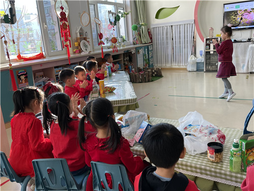 红红的中国结、五彩的装饰灯、大大的福字,喜气洋洋的对联……各种年的元素跃然眼前,饱含着浓浓的温馨和暖意。孩子们穿着喜庆的服装,展示着精彩的节目,集体舞蹈《新年乐淘淘》、歌表演《新年好》……。孩子们脸上洋溢着甜美笑容,一幕幕温馨的场景、一场场趣味的游戏,承载着美好的祝愿,愿所有的宝贝平安健康、快乐成长。