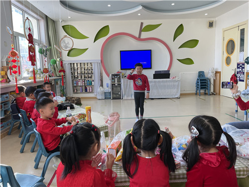 触摸着冬日里最温暖的阳光,聆听着孩子们最快乐的笑声,朵朵四班的活动从环境的精心布置到孩子们精彩的节目,无一不表达着对新一年的美好祝福与憧憬。此次活动本着受益于幼儿为宗旨,将迎新年活动以幼儿喜欢的形式呈现出来,节目表演、游戏互动、在不同活动场景中表达出对老师、家长的感恩之情。这些环节贯穿着整个活动,从点滴中记录着孩子们的成长足迹。