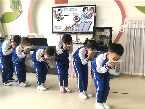 随着警报声响起,各班级即刻停止正在有序开展的活动,班主任老师引导孩子们拿起湿毛巾,捂住口鼻,弯腰沿着安全通道路线,快速有序地撤离教室,并到达安全地点集合。全体师幼秩序井然,火速撤离危险区域。到达指定的安全位置后,老师们快速清点班级人数,检查所有幼儿状态,并及时向负责本次演练的领导汇报班级情况。