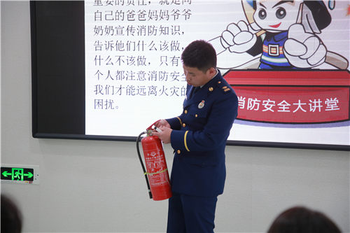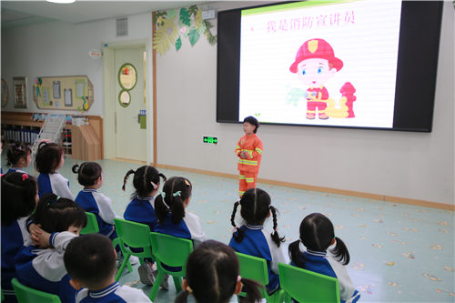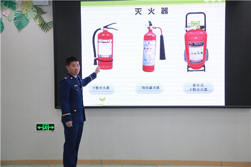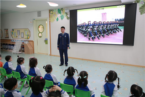 活动中,幼儿园邀请到延吉市消防大队杨警官来园为幼儿讲解防火知识。杨警官结合森林防火、生活防火相关内容,通过生动的视频、形象的图片、有趣的游戏,将消防安全知识一次又一次地深植幼儿心灵,帮助幼儿懂得可燃物品的危害性,并引导幼儿练习火灾逃生自救方,进一步提高了幼儿自救自护能力。