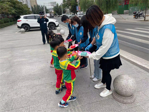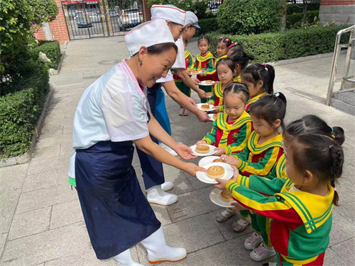 活动中,老师为孩子们讲述了中秋节的故事,讲解了中秋节“赏月、拜月、吃月饼、赏桂花”等习俗。孩子们都听的津津有味,了解中秋节寓意月圆人团圆,有寄托相思,祈盼丰收之意。之后通过美工、手指谣、做月饼等不同形式,让孩子们了解中秋节的传统文化,孩子们化身“小小面点师”,迫不及待地想让“月饼,快到手里来”,借助“模具”有模有样地制作月饼!孩子们还将月饼送给志愿者、环卫工人、建筑工人等,并送上节日的祝福。