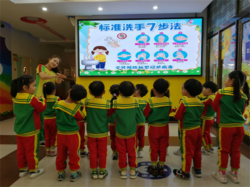 活动中,幼儿园通过宣传专栏、电子屏幕、微信等形式提前向幼儿、家长和教师宣传正确洗手知识。各年段依据幼儿学习特点和兴趣点,通过讲述《不爱洗手的娃娃》、《小花猫生病了》等故事让幼儿明白洗手的重要性;活动中,老师亲身示范,幼儿实际操作,让小朋友们在轻松的洗手歌声中练习正确的“七步洗手法”,孩子们通过这些简单有趣的儿歌,轻松的学会了清洗手腕、手尖和手指缝的方法;活动后,幼儿用绘画的形式,将本次活动的感受、体验、想法记录下来形成“全球洗手日”宣传画。
