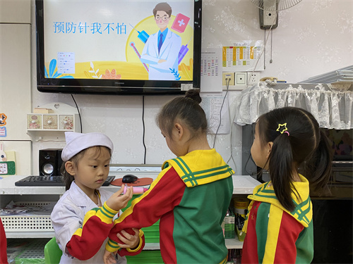 对于打针,孩子们内心总是抗拒的,为了让孩子们了解新冠疫苗的重要性,降低孩子们的恐惧感,班级老师通过《新冠病毒》《我不怕打针》等一系列绘本、游戏、情景模拟、儿歌等多种形式,对幼儿进行了“接种新冠疫苗,我不怕!”主题活动教育,帮助孩子了解接种疫苗的重要性,缓解了个别幼儿对疫苗的恐惧心理,为接下来顺利开展疫苗接种工作做好了充足准备。