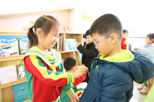 幼儿园里“小雷锋们”擦桌子、摆椅子,帮助身边有需要的人,我帮你拉拉链,扣扣子,你帮我提鞋子,互助互爱。萌娃们用行动展现出无私奉献、热爱集体的雷锋精神。