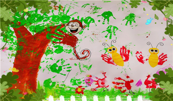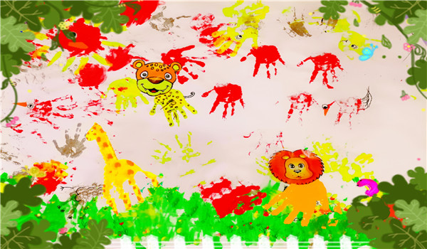 幼儿兴奋的欣赏着自己的小手印,在老师的鼓励下兴奋不已的拿出画笔对手印进行添画,一个个精彩的造型跃然纸上,小手印变成了绚丽多彩的小花、上下飞舞的蝴蝶、郁郁葱葱的大树、展翅飞翔的小鸟、威风凛凛的狮子、顽皮可爱的猴子……一场“动物联欢会”跃然纸上,孩子们沉浸在创作的乐趣中,在交流合作中成长着、收获着。