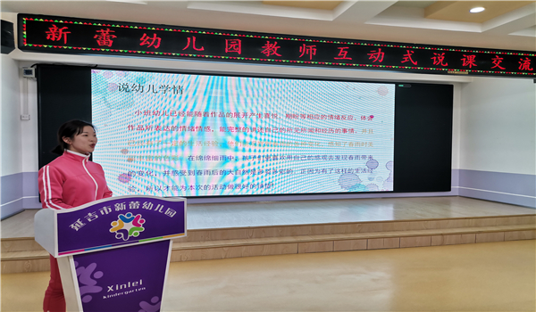 为促进青年教师快速成长,培养教师把握教材、处理教材的能力,提高活动实施水平,达到以“说”促“教”的目的, 近日,新蕾幼儿园开展了教师说课实践式研培活动。
