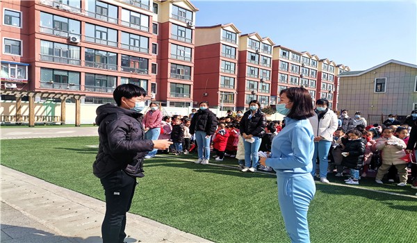 随着警报声响起,消防疏散演练开始了。各班教师迅速按照疏散路线带领幼儿捂住口鼻,弯腰俯身手扶墙壁,快速、有序地撤离到户外空旷场地,教师迅速清点人数,并向总指挥报告。