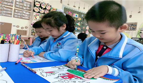活动前,教师与小学教师取得联系,进行现场视频连线,在连线中孩子们参观了小学的教室、功能室、操场以及丰富多彩的特色活动,了解了小学生活作息与幼儿园的不同,纷纷表示迫不及待的想体验小学生活,并通过绘画的形式展现出了自己心中小学的样子。新奇构思、大胆想象,五彩斑斓的画面展现着孩子们对小学生活的美好向往与期盼。