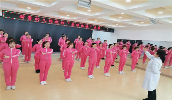 比赛前,为了使教师能够正确的指导幼儿,真正起到保健作用,相关负责人组织教师进行了爱眼体*赛,并在赛后逐节进行了指导,规范教师动作。