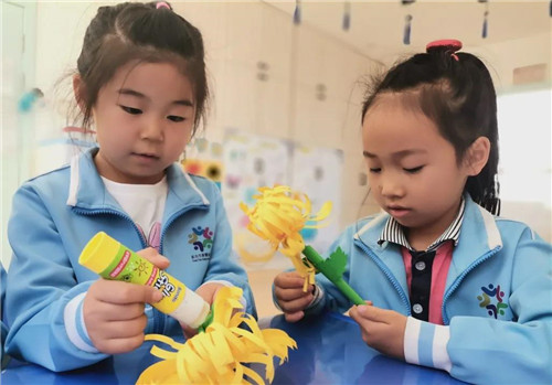 致敬英雄是一种感悟,是一种传承。在教师的引导下,幼儿利用彩纸制作了精美的菊花,把对烈士深深的敬意和深厚的感情从心里传递到指尖上,渗透到小花里。最后幼儿将菊花插在了幼儿园青翠的松树下,献给我们的英雄,以祭奠英烈之魂。