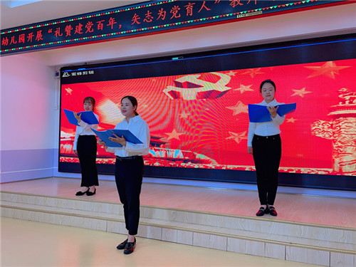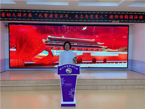 为了庆祝中国共产党成立100周年,弘扬和讴歌党的百年光辉历程和取得的伟大成就,4月29日,新蕾幼儿园开展了以“赞颂建党百年,矢志为党育人”为主题的教师诗歌朗诵活动。