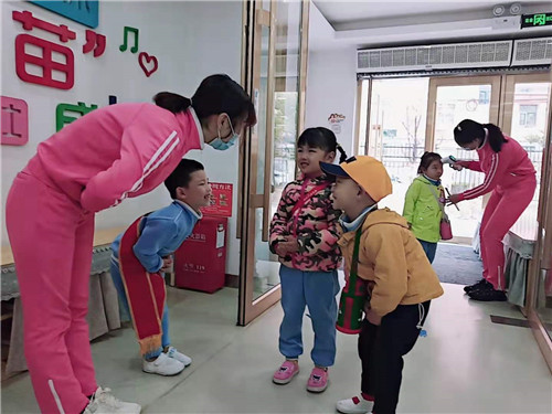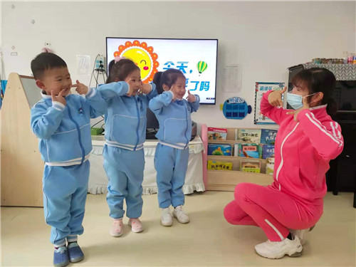 伴随着热情、温馨的互致问候,开启了幼儿园美好的一天。活动中,教师通过观看视频和图片等形式,帮助幼儿了解到微笑不单单是种表情,更是一种感情,嘴弯起的弧度,勾勒出温暖和希望,微笑可以更好地促进了同伴之间的友好感情。随后,孩子们用画笔绘画出自己天真无邪的笑脸制作成微笑卡,并将甜美的微笑卡送给身边的人,祝愿大家笑口常开。“老师,我把微笑送给您,祝您天天开心快乐”小小的我们,让微笑在身边传递。“你笑起来真好看,像春天的花一样……”在学习手势舞《你笑起来真好看》中,幼儿感受着歌曲欢快的旋律和优美的动作,进一步懂得了微笑带来的正能量。
