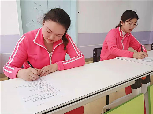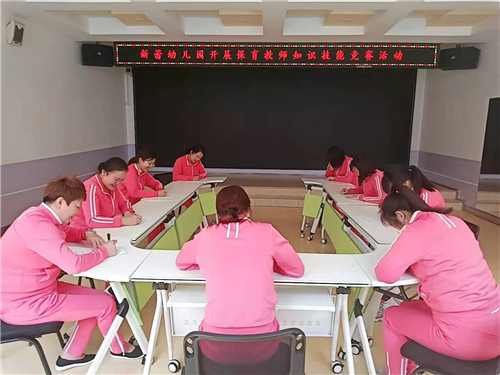 理论考试的内容涵盖了保育教师基本业务知识、幼儿保育保健知识、防疫防控知识、春秋季传染病预防知识、诺如病毒防控知识等,对保育教师的综合素养做了一次全面的考察,通过以赛促学的方式,促进保育教师专业化成长。由于比赛前的认真学习、充分准备,理论考试中,参赛选手认真答题、表现出色,评委对保育教师们扎实的保教知识给予了充分的肯定。