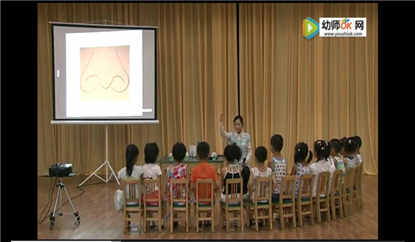 林老师:吴老师用自己画出鼻子的有趣形式来引趣,认识鼻子的结构,特别有创意,孩子们非常喜欢。