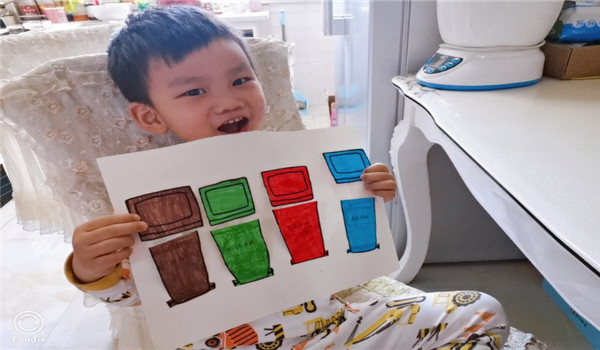 新蕾幼儿园通过公共资源平台、微信公众号发布了“垃圾分类新时尚,城市文明我先行”倡议,号召大家从我做起,积极参与垃圾分类活动。教师也结合幼儿年龄特点,在班级群中开展了实践认知、废旧物品小制作等活动,帮助幼儿认识垃圾分类,提高环保意识。小班幼儿通过实践操作,认识了分类垃圾桶的颜色和标识,明确了不同颜色的垃圾桶所代表的含义,有的幼儿还动手制作了相应的标志和符号,把家中的小桶变身成了分类垃圾桶。在此基础上,中、大班的幼儿还进行了废旧物品小制作。在活动中,孩子们发现,有些要扔掉的东西还可以有其他的用途。在爸爸妈妈的帮助下,通过亲子设计、巧手装扮,纸盒、塑料瓶、易拉罐等废旧物品变废为宝,变成了各式各样、实用美观的小制作。