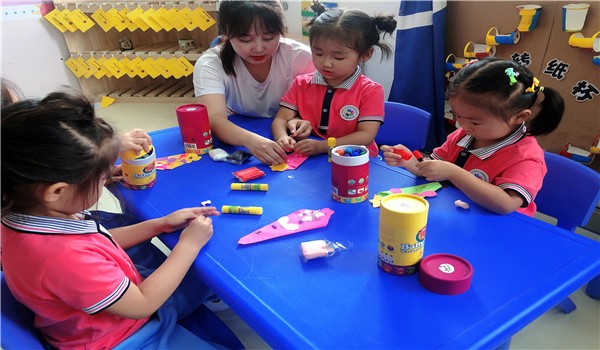 随后,孩子们充分发挥想象力和创造力,运用彩泥、彩纸、彩笔等工具自由制作、装饰、粘贴,做出了富有童趣的手工花束。鲜花虽美,只见凋零,手工花束饱含了孩子们深深的感恩,为老师妈妈送上了最温暖、最美好的节日祝福。