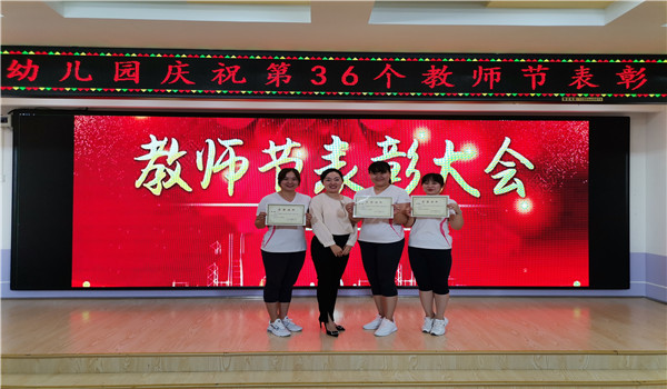 活动中,相关领导为教师送去了节日祝福,对教师在疫情期间克服困难、忘我工作的敬业精神给予了充分肯定,鼓励教师再接再厉,再创佳绩,全体教师倍受鼓舞。在随后的颁奖环节中,教师们自信的走上奖台,接过一份份代表荣誉和肯定的证书。为确保此次评选公平、公开,幼儿园制定了完整的评选方案,通过师德师风、工作业绩、民主投票等方面综合评价,评选出了优秀教师、先进个人、学习型保育员、突出贡献奖等。滴滴心血凝翠玉,张张奖状见甘辛。每一项荣誉都源于获奖者辛勤的耘作,每一道光环都闪耀着新蕾人的奋发精神。