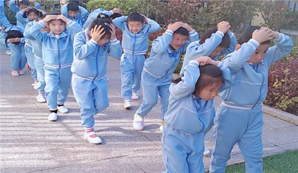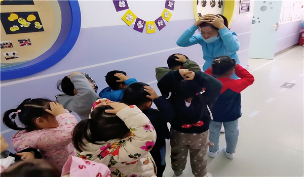 随着避险警报响起,在教师的保护下,幼儿双手抱头、蜷缩身体,降低重心就近躲到桌下、墙角边进行紧急避险。随后,按照预定逃生路线撤离到安全集合点,整个过程快速、安全、有序。在演练过程中,教师密切关注幼儿安全,到达安全区域后及时清点幼儿人数,安抚幼儿情绪,并向安全主任汇报各班级撤离情况。