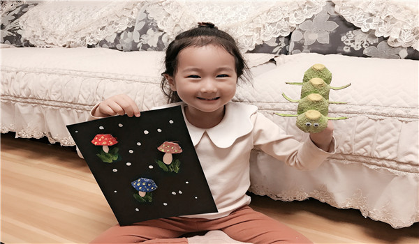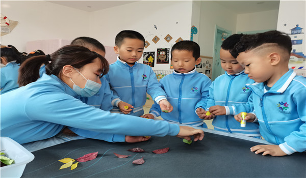 随后,孩子们利用幼儿园院子里的落叶制作了漂亮的树叶贴画,一只只活灵活现的小鱼,一座座惟妙惟肖的城堡跃然纸上。通过这样的形式,让孩子们知道许多废旧物品都是可利用的。