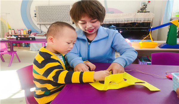 在区域活动中,具有一定美术专长的赵老师会带着孩子们在美工区里大胆创意。孩子们会告诉她今天想创作什么,或者问老师给他们带来了什么好玩的活动,赵老师就这样和孩子们一起探索着美术的快乐……