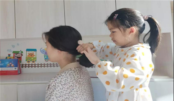最后,老师引导幼儿回家后给每天照顾自己的家人梳一次头发,用梳头这一小小的举动,表达自己浓浓的爱意,让爱从“头”开始。