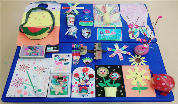 活动中,幼儿充分发挥自己的想象力与创造力,用剪刀剪一剪,胶水粘一粘,废旧的材料在他们的手里来了一个华丽大变身,变成了美丽又时尚的环保作品。用卷纸筒装饰上五颜六色的花纹变成小笔筒;用废旧的糖纸做成娇艳欲滴的腊梅;用废弃的瓶子做成五彩斑斓的花瓶……一件件充满创意的作品造型拙朴可爱、个性鲜明、童趣盎然,体现了孩子们丰富的创意和想象。