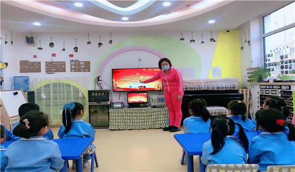 “雄赳赳,气昂昂,跨过鸭绿江……”活动中,教师和孩子们一起观看了抗美援朝纪录片,共同回顾艰难的抗美援朝历史。一幕幕紧张激烈的战斗场景,让孩子们感受到了志愿军英雄们英勇善战、不怕牺牲的壮举。当《我的祖国》熟悉的旋律响起,孩子们哼唱起来,自豪的表情,激动的心情,无以言表。